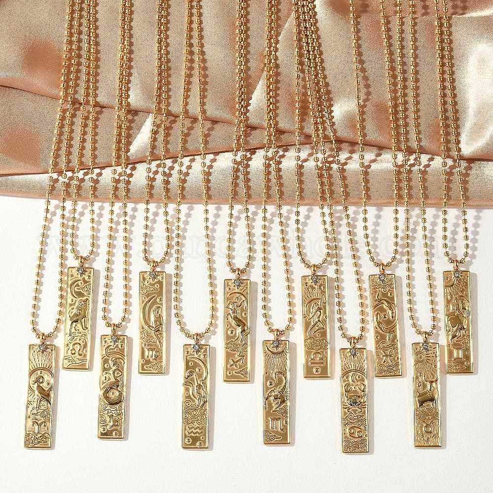 • Овен 304 ожерелья с подвеской в виде прямоугольного созвездия из нержавеющей стали с прозрачным кубическим цирконием для женщин и мужчин, реальный 18 k позолоченный, Овен, 18.07 дюйм (45.9 см)