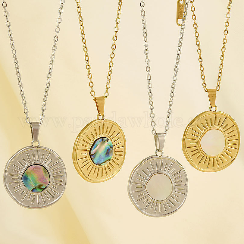 Стильные 304 ожерелья с плоским круглым кулоном из натуральной нержавеющей стали с паве