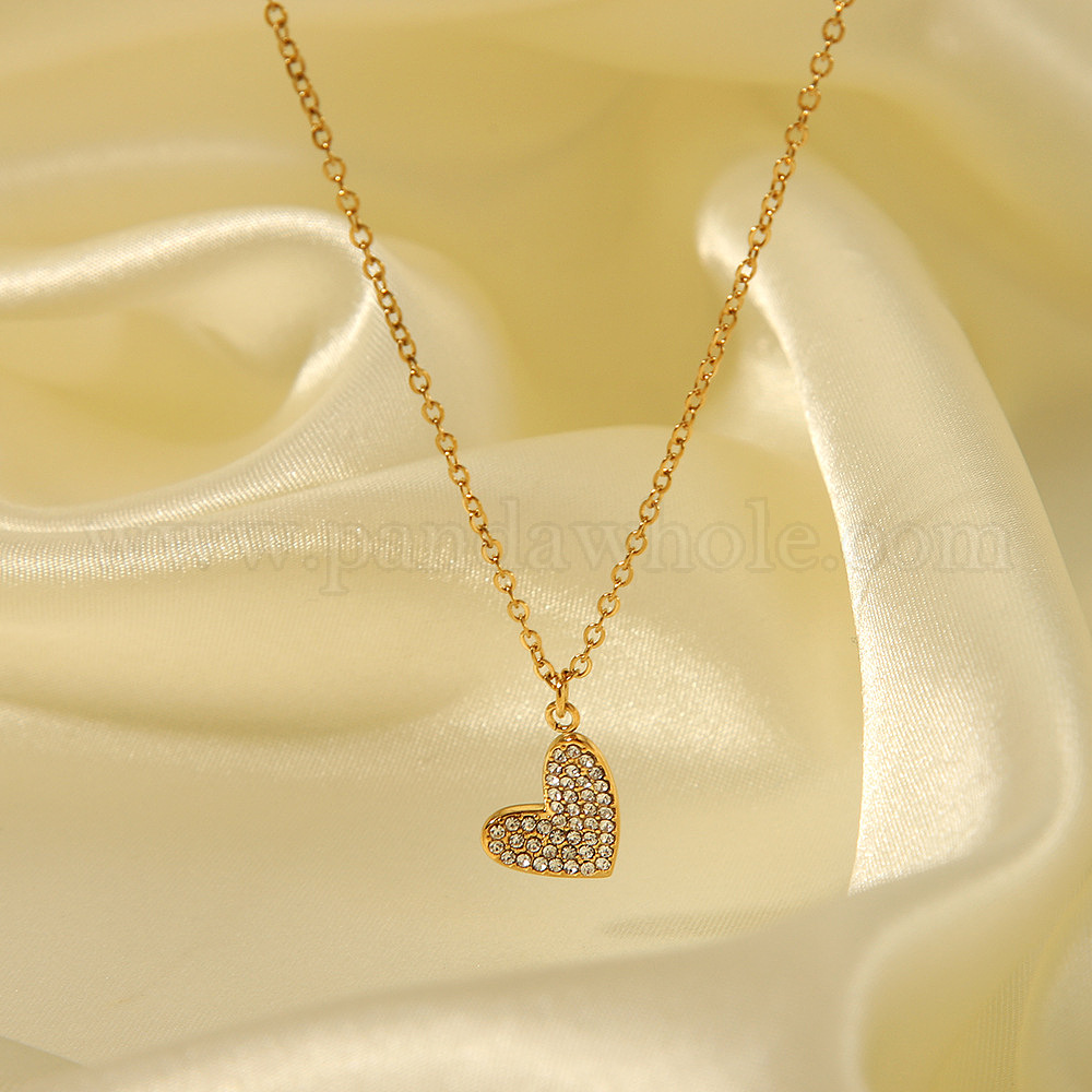 Ожерелья из нержавеющей стали с подвеской в форме сердца со стразами для женщин