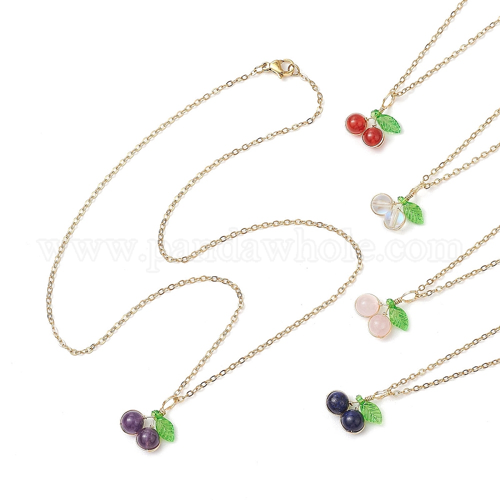 Ожерелья с подвеской в виде вишни из натурального лазурита/сердолика/розового кварца/аметиста/синтетического лунного камня, 304 ожерелья-цепочки из нержавеющей стали для женщин, золотые