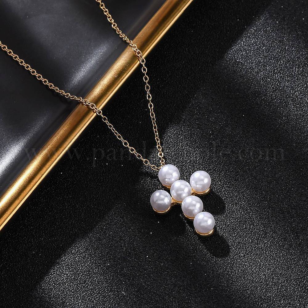 304 ожерелья с крестом из нержавеющей стали и пластика с имитацией жемчуга для женщин, ионное покрытие (ip)