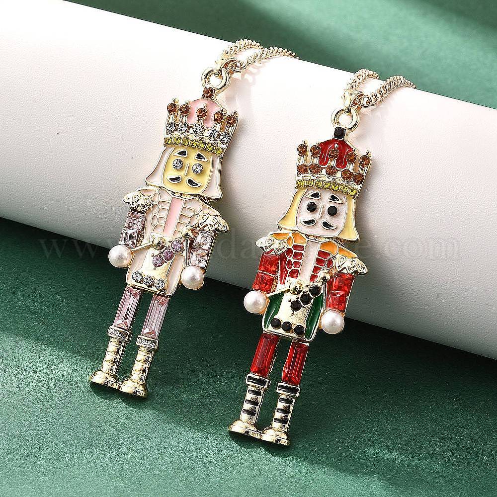 Ожерелья с подвеской в виде рождественского щелкунчика из сплава и эмали, с пластиковым жемчугом и стразами, золотые