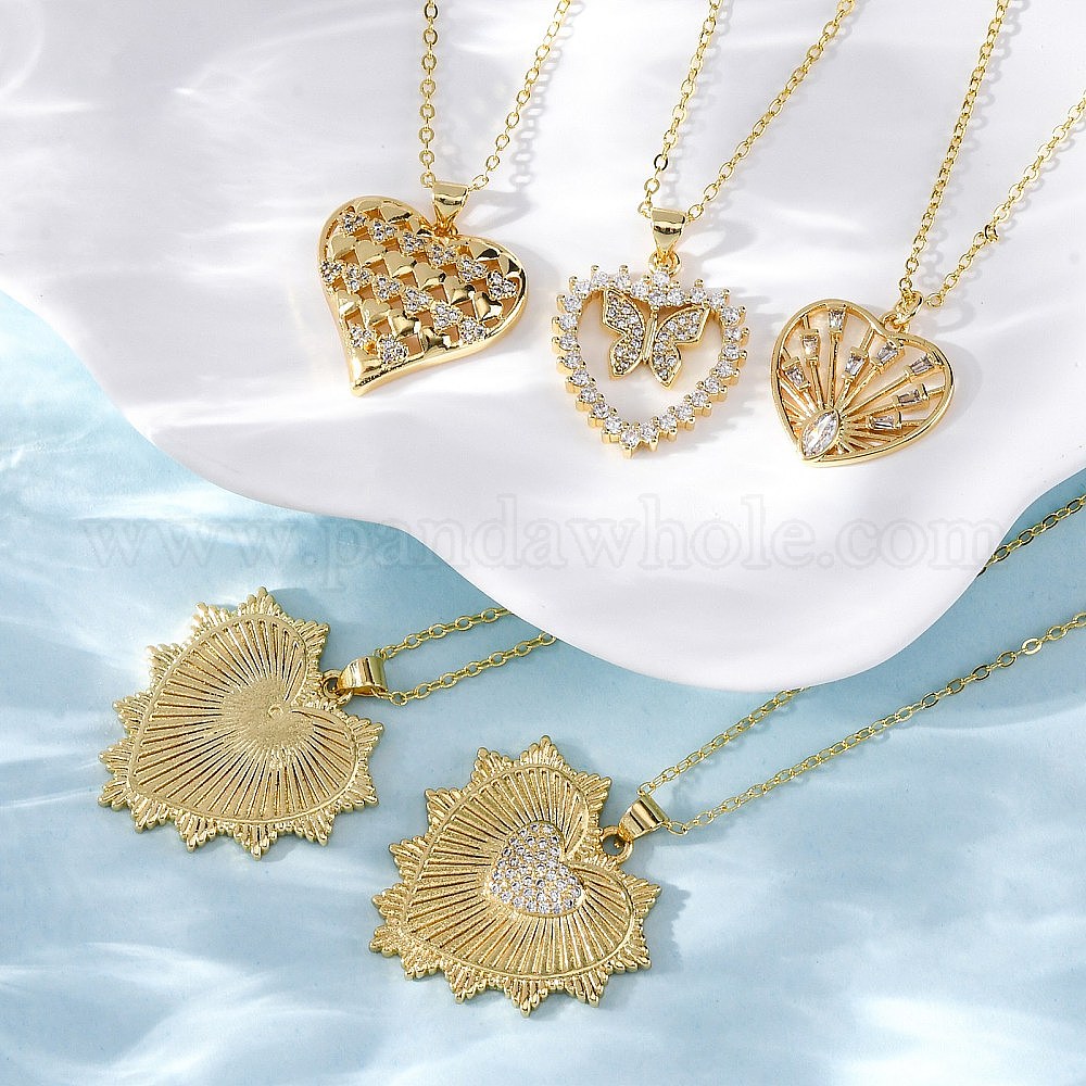 Латунные микропаве прозрачные кубические цирконии ожерелья с подвеской в виде сердца для женщин