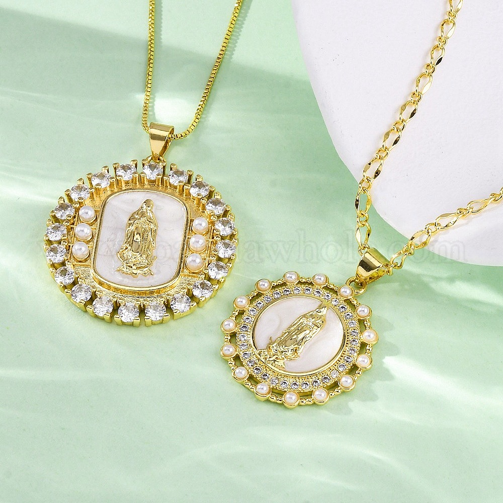 Латунные прозрачные кубические цирконии плоские круглые с подвеской Девы Марии, с пластиковой жемчужиной и ракушкой