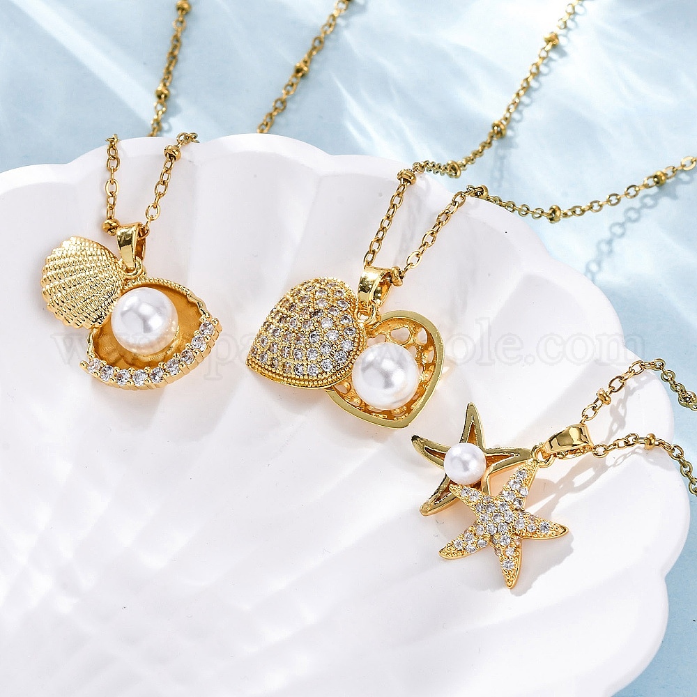 304 ожерелья из нержавеющей стали с прозрачным кубическим цирконием для женщин, с бусинами из искусственного жемчуга, реальный 18 k позолоченный