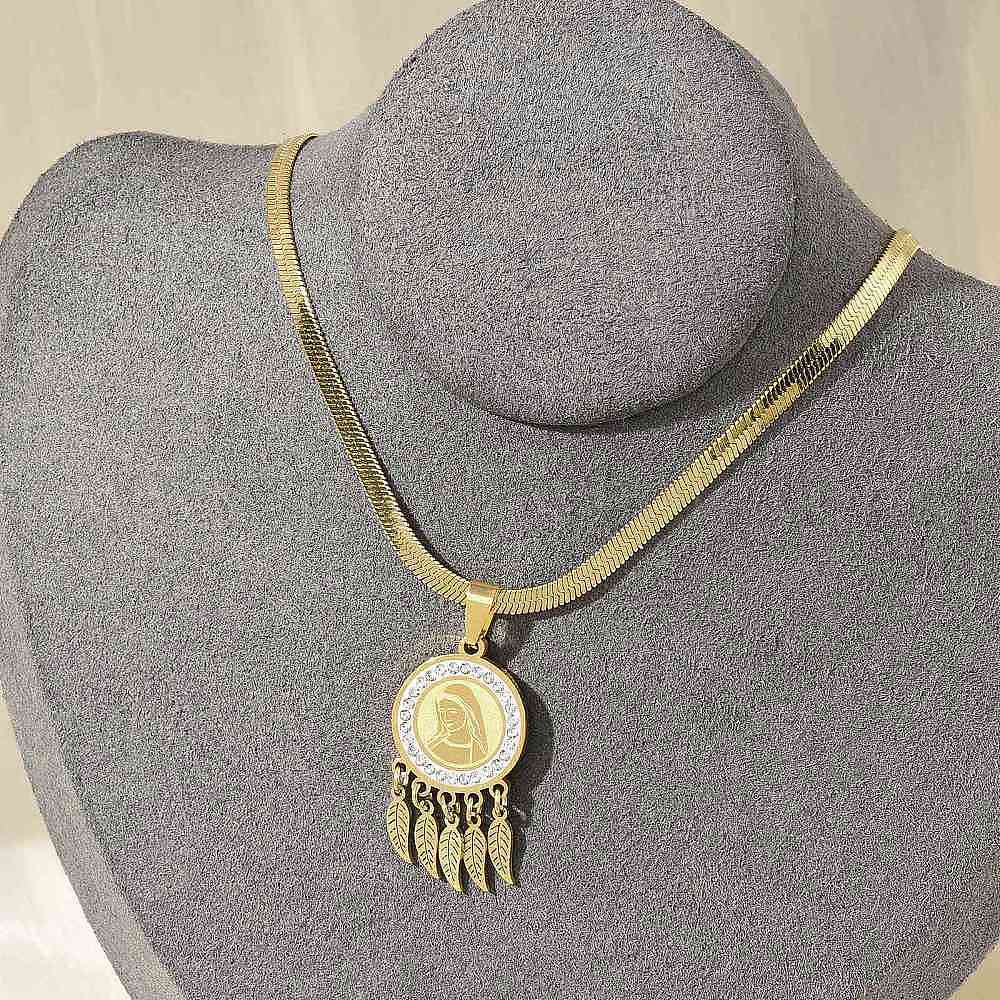 201 ожерелья из нержавеющей стали с плоским круглым кубическим цирконием и подвеской в виде пера