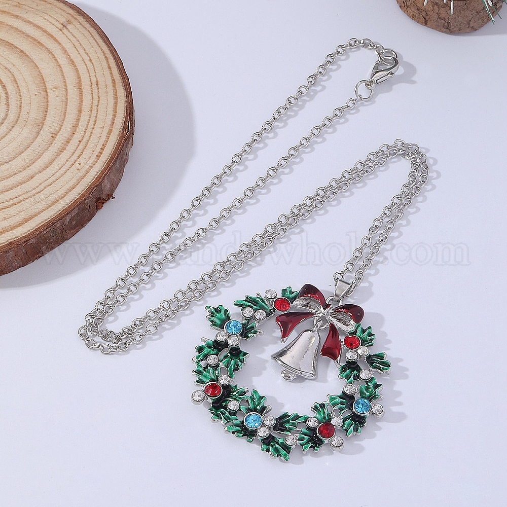 Рождественский венок и рождественский колокольчик сплав разноцветные ожерелья с подвесками из горного хрусталя, темно-красный и зеленый