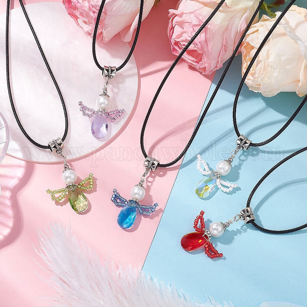 Ожерелья с подвеской в виде крыла ангела из стеклянных бус, ожерелья из черного вощеного хлопкового шнура для женщин (031GFZ)