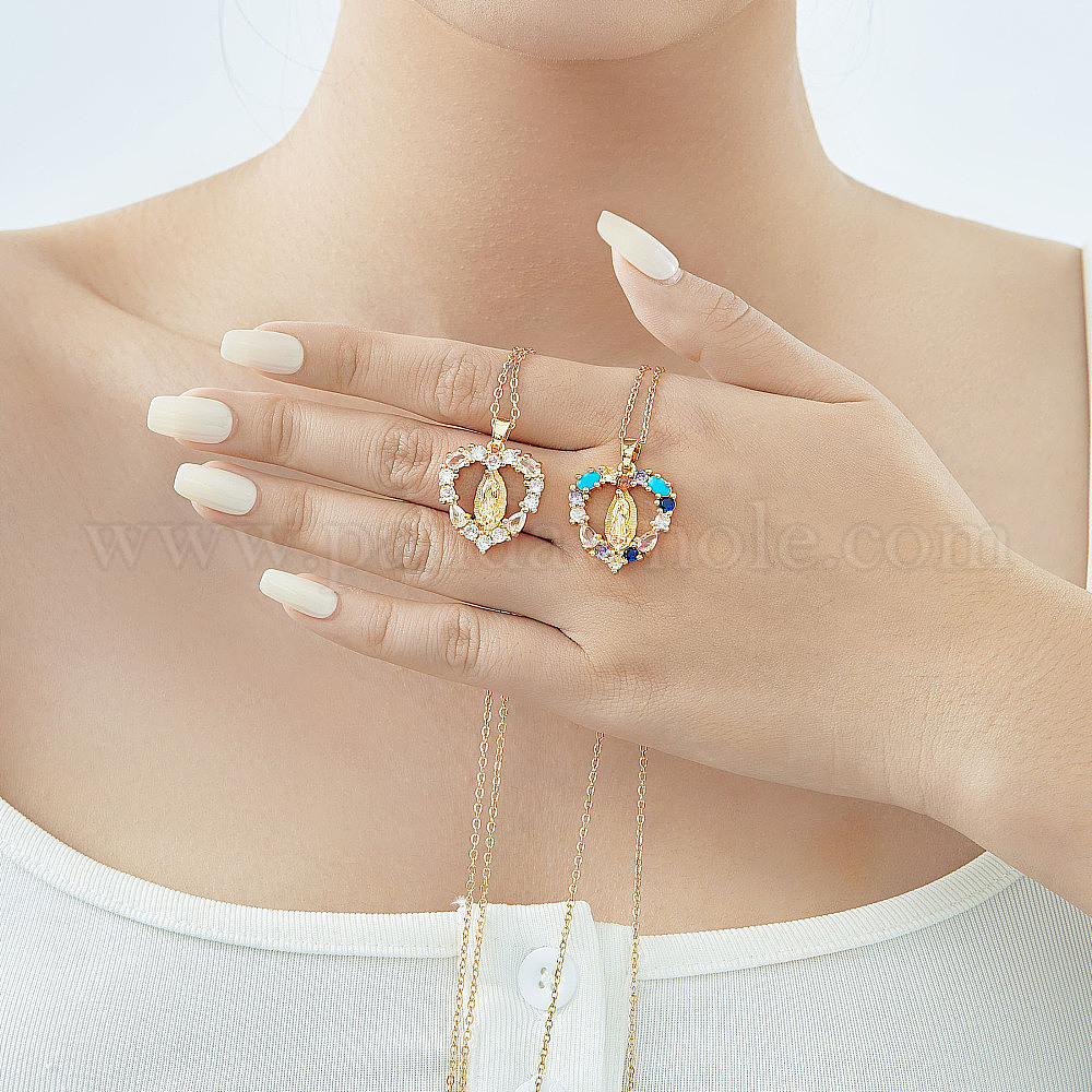Старинные латунные кубические цирконии религиозные ожерелья с полым кулоном в форме сердца Девы Марии, рождественский подарок, золотые