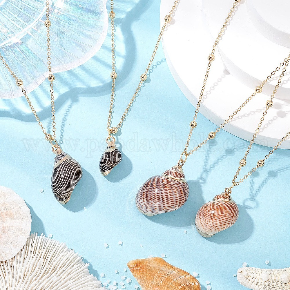 2 шт. 2 стили гальванизированные натуральные спиральные ракушки кулоны ожерелья, ожерелья-цепочки из латуни, золотые