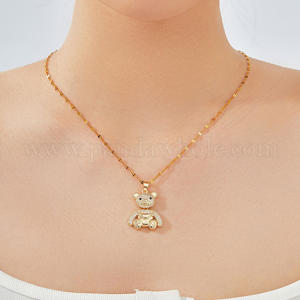 • Золотой Элегантные ожерелья с подвеской в виде мини-медведя из прозрачного кубического циркония, золотые, 15.75 дюйм (40 см)
