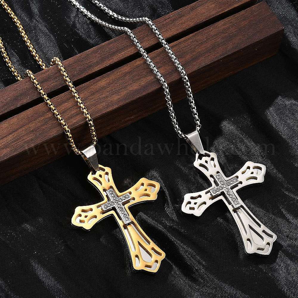 • Золотой & Цвет Нержавеющей Стали 201 подвесные из нержавеющей стали ожерелья, со стразами, крестик, золотые и нержавеющая сталь цвет, 23.54 дюйм (59.8 см)