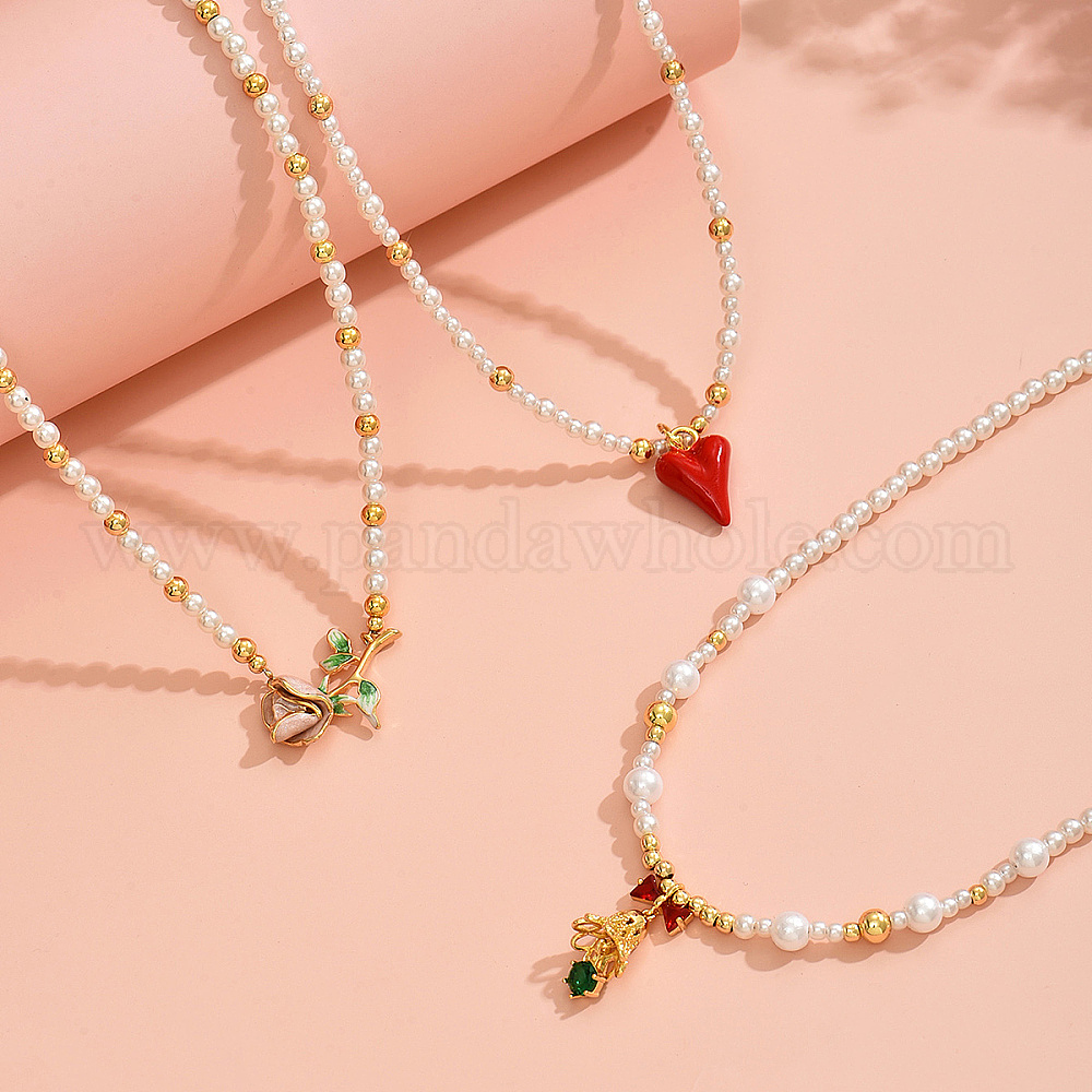 Латунь эмаль кулон ожерелья, Пластиковые искусственные жемчужины ожерелья для женщин, золотые