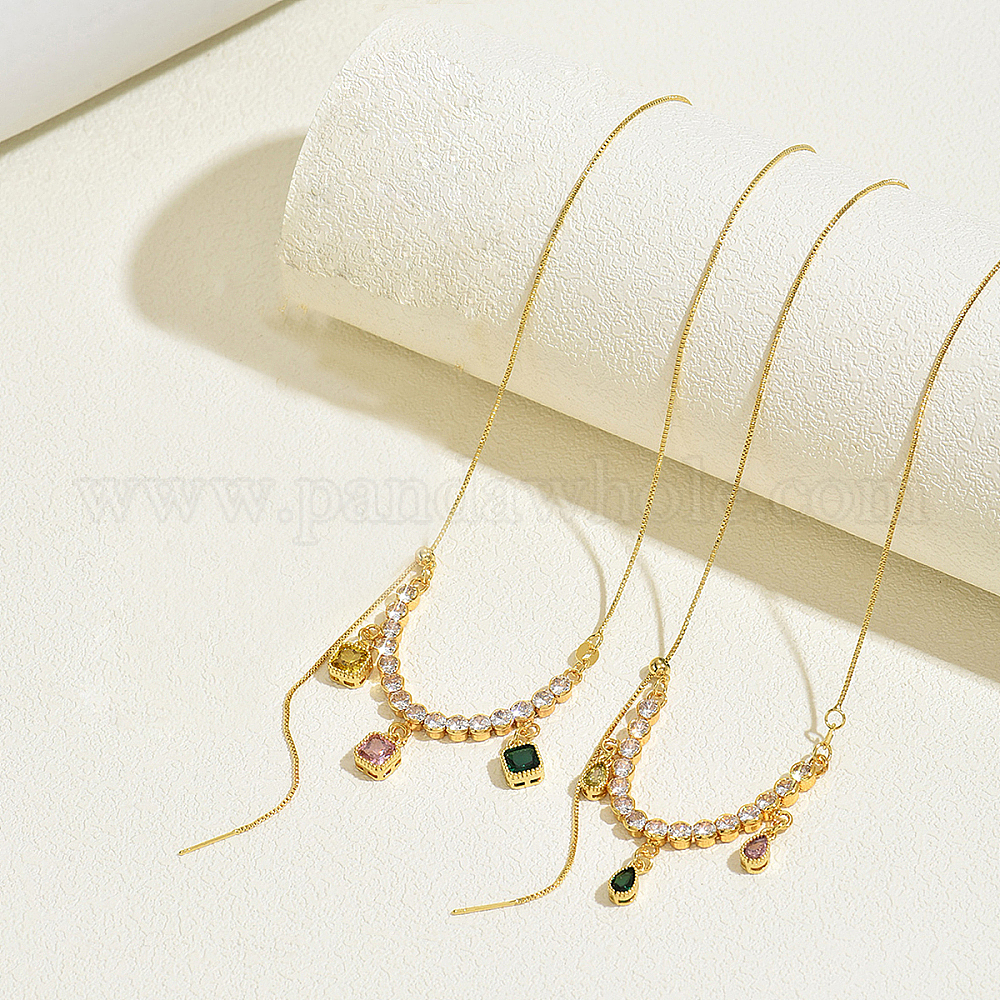 Регулируемый слайдер элегантные латунные цветные кубические циркониевые подвески ожерелья для женщин, золотые