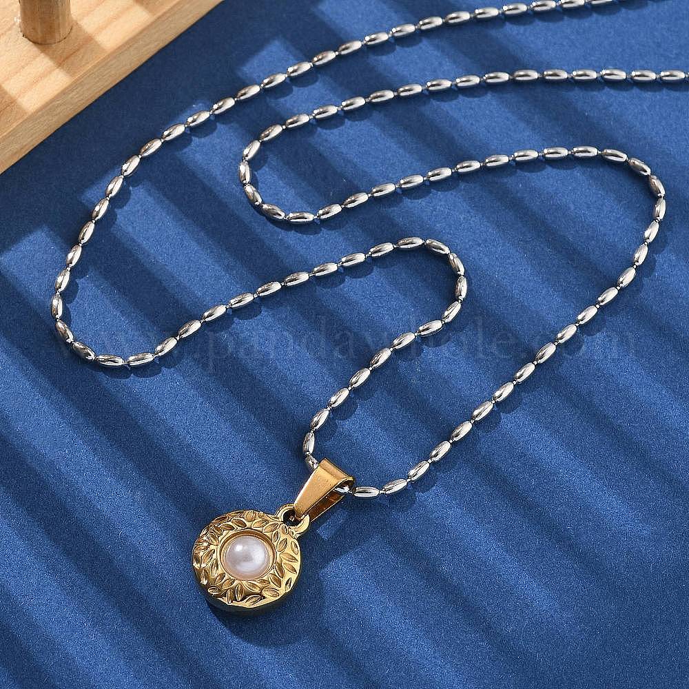 304 Женские плоские круглые подвески из нержавеющей стали и пластика с имитацией жемчуга