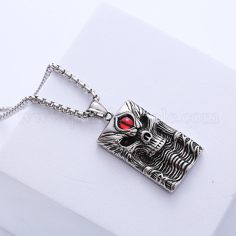Винтажный хип-хоп 304 ожерелья с подвеской в виде черепа из нержавеющей стали с красным сглазом для мужчин