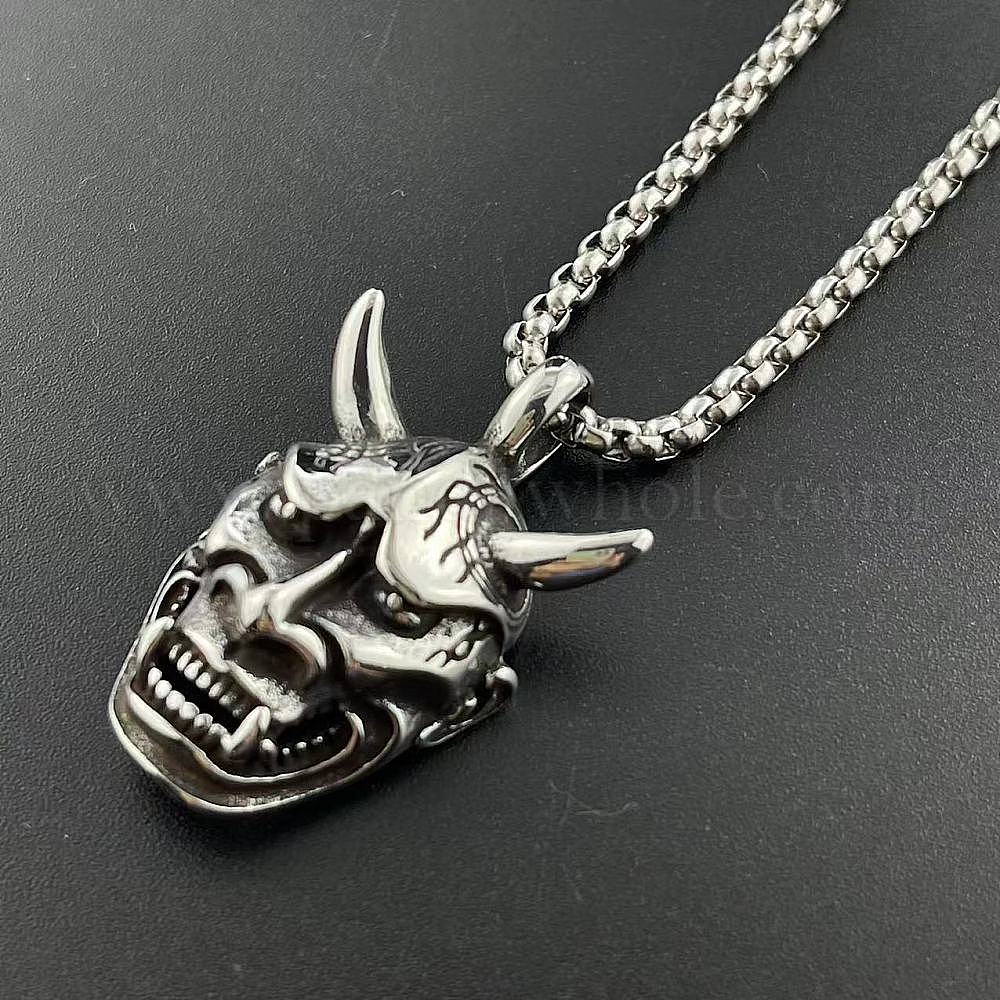 Ретро-стиль хип-хоп 304 ожерелья с подвеской в виде лица призрака из нержавеющей стали для мужской моды