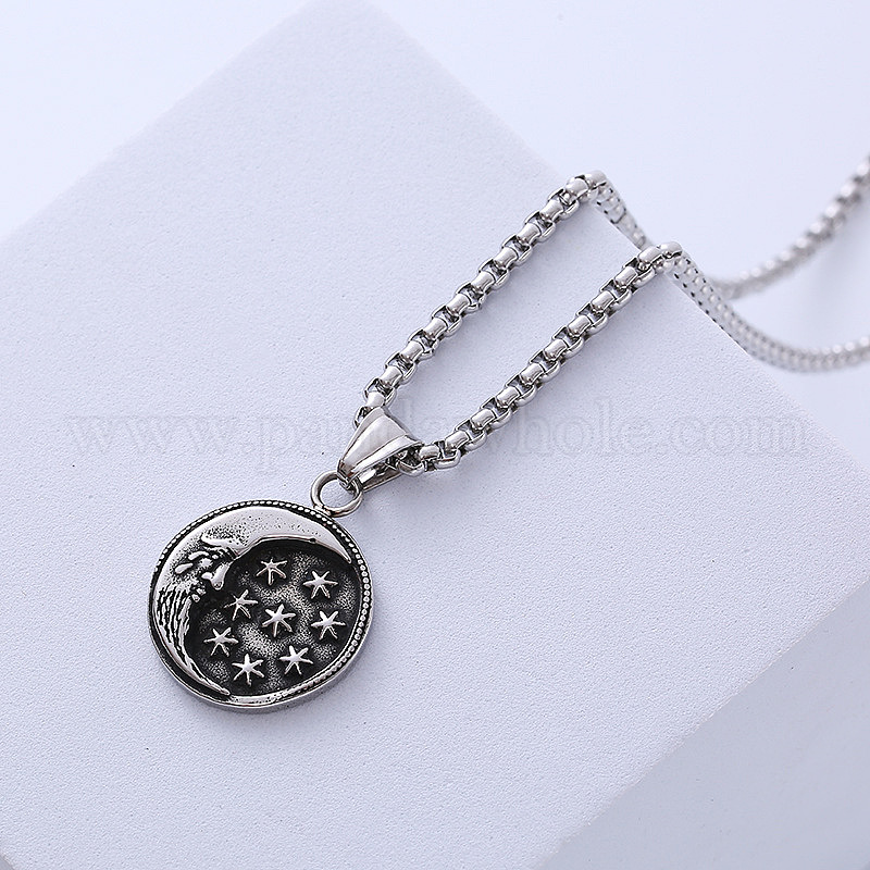 304 Женские кулоны из нержавеющей стали с плоским круглым кулоном в виде луны и звезды