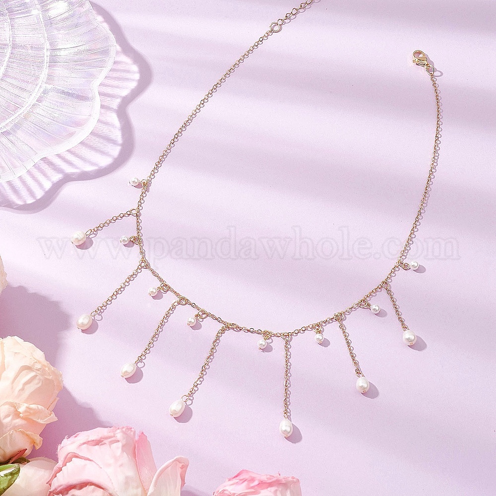 Оболочки жемчужные ожерелья, с латунной кабельной цепью и застежками из лобстера из нержавеющей стали 304