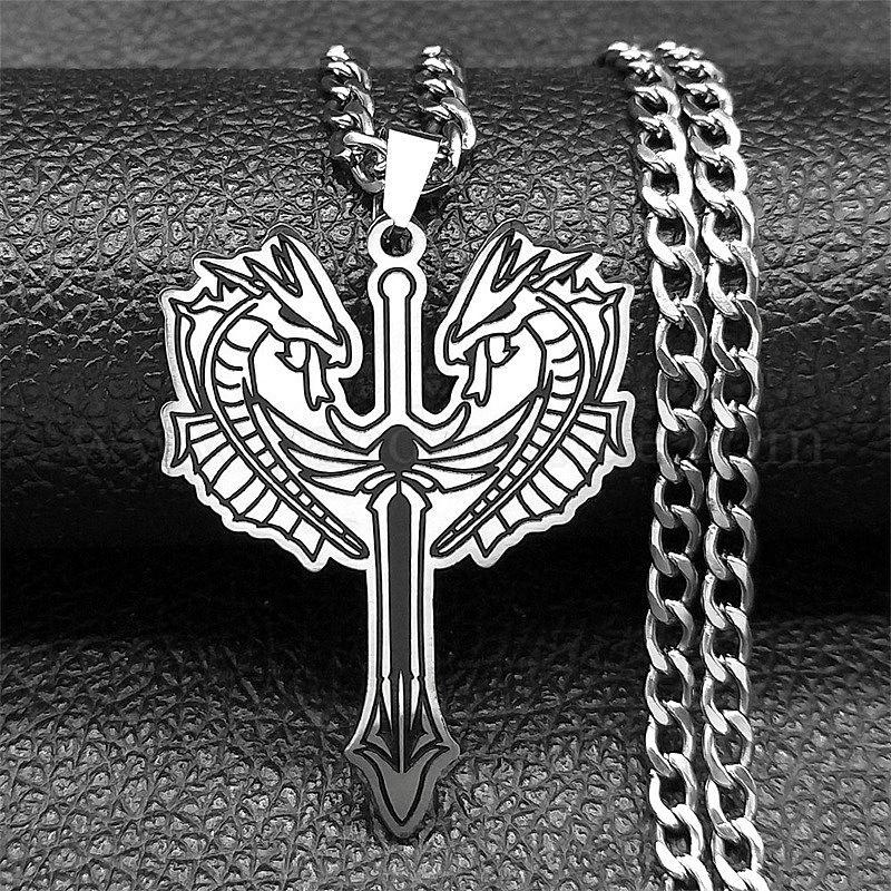 201 подвеска из нержавеющей стали с двойным крестом-мечом в виде дракона, витая цепочка для мужчин