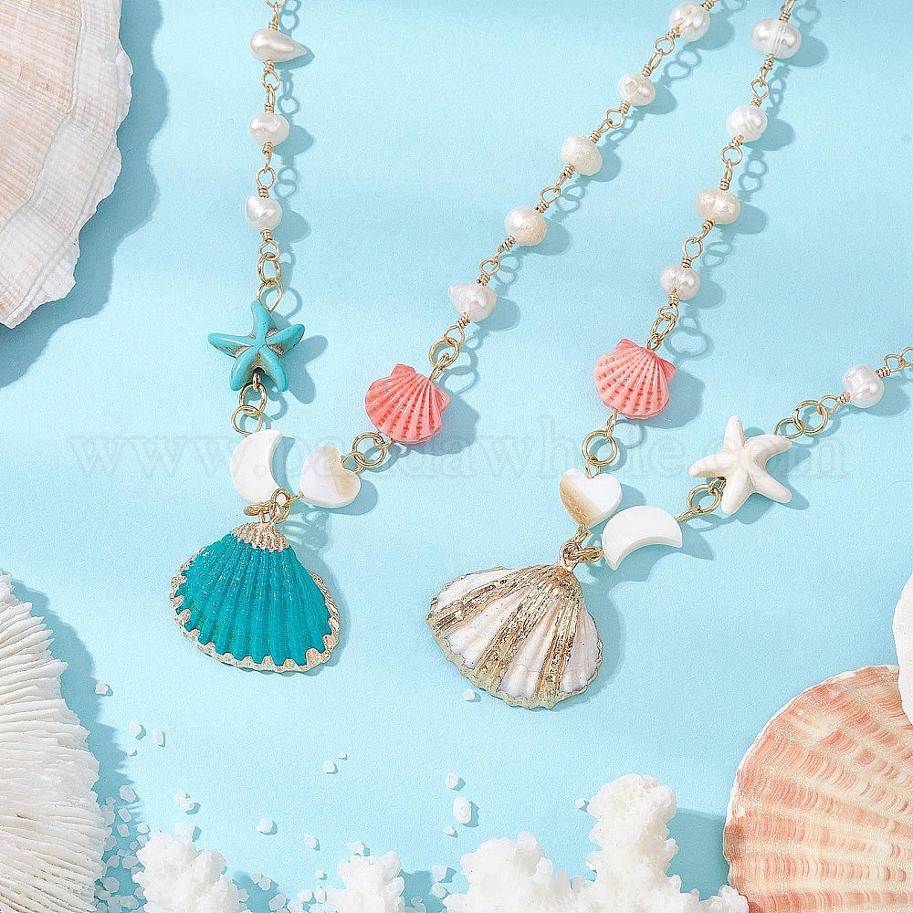 Летние подвески из ракушек с распылителем и гальваническим покрытием, Ожерелья из бисера ручной работы из латуни и натурального пресноводного жемчуга для женщин, золотые