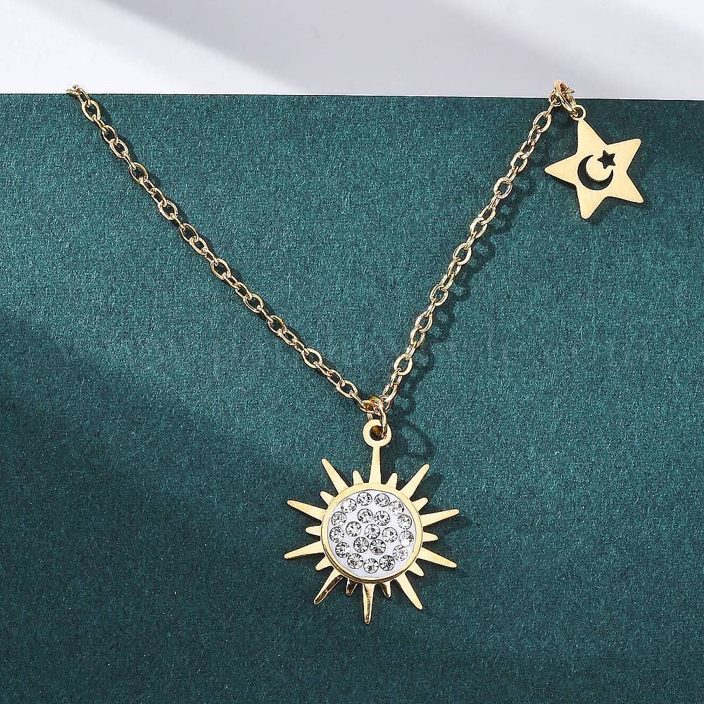 • Золотой 201 ожерелья с подвеской в виде звезды и кристаллов из нержавеющей стали для женщин, с эмалью, золотые, 16.06 дюйм (40.8 см)
