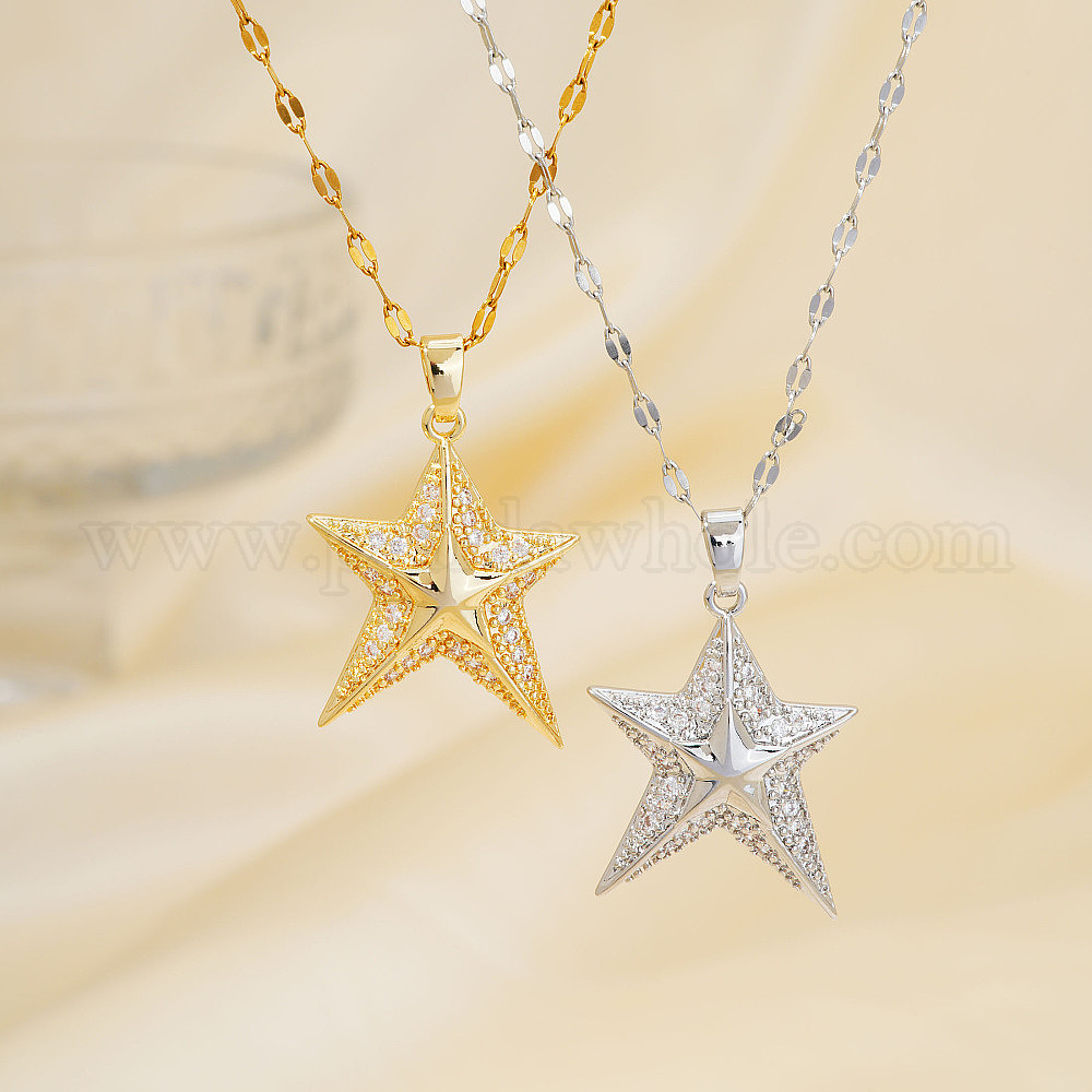 • Золотой Элегантные латунные ожерелья с подвесками в виде звезд из прозрачных кубических цирконий с микропаве, идеальный подарок для девочек, День святого Валентина, золотые, 15.75 дюйм (40 см)