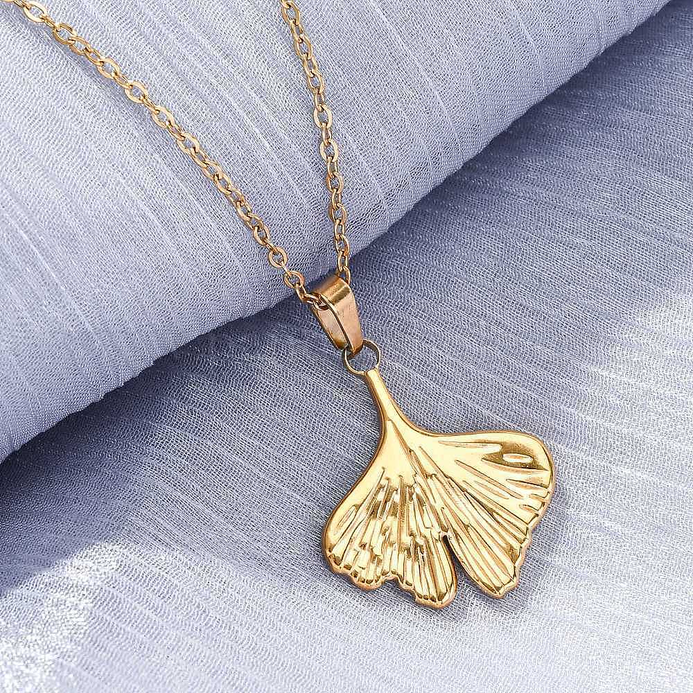 Лист гинкго 304 ожерелья с подвесками из нержавеющей стали, ионное покрытие (ip)