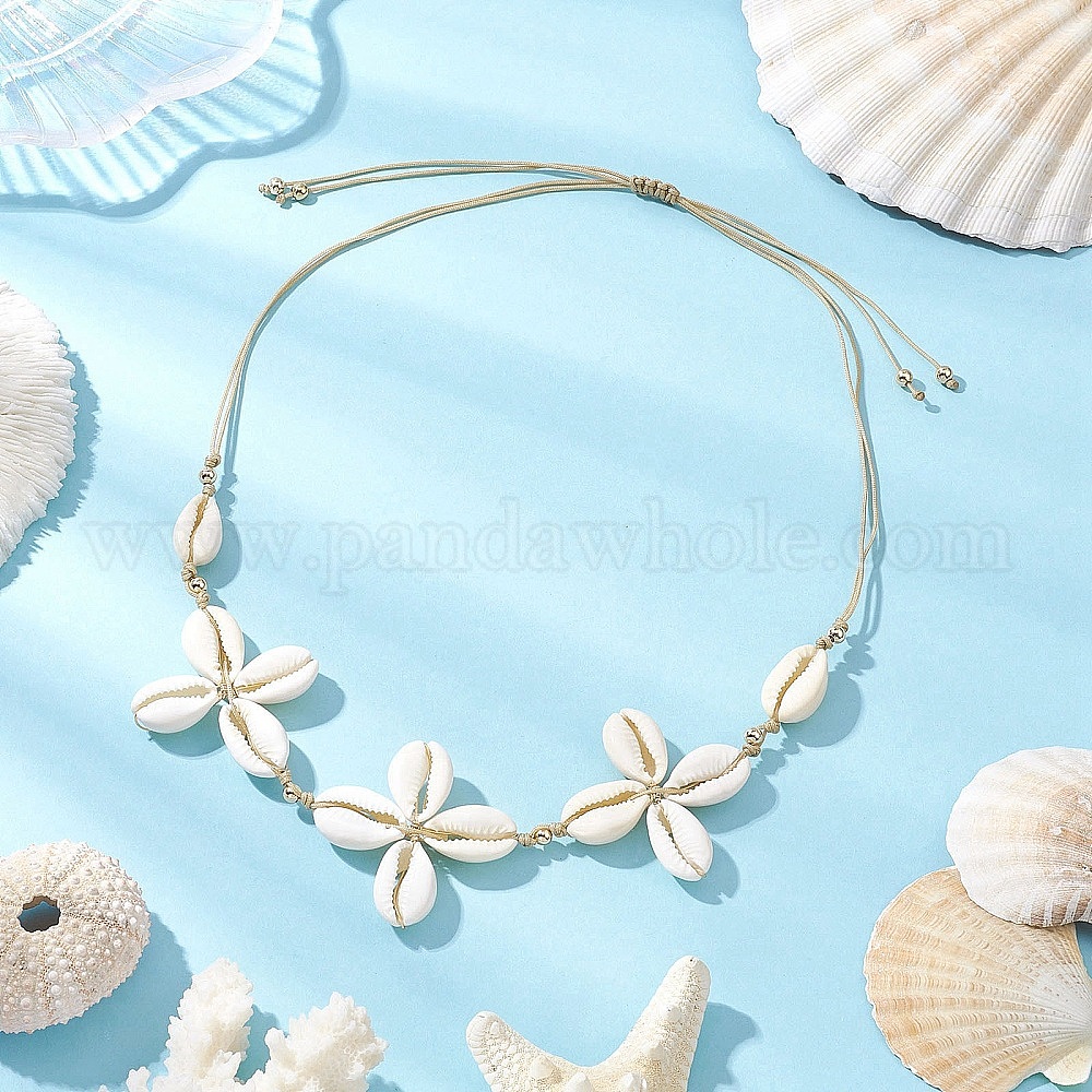 • Белый Дым Ожерелья из латунных натуральных ракушек каури, реальный 18 k позолоченный, серый, 24.80 дюйм (63 см)