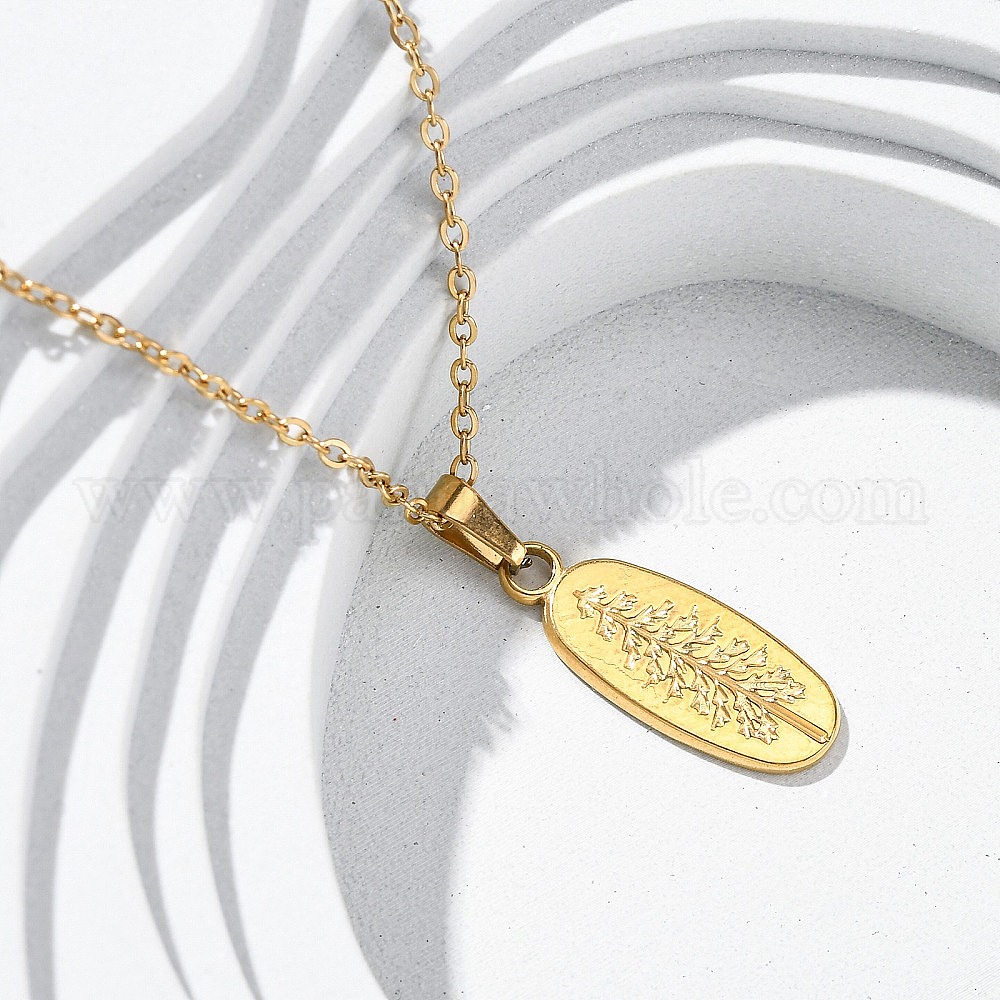 Овальные с сосной 304 ожерелья с подвесками из нержавеющей стали, ионное покрытие (ip)