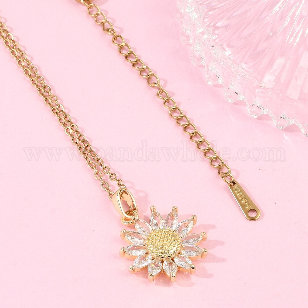 Латунный цветок микропаве кубический цирконий кулон ожерелья, с ионным покрытием (IP) 304 цепь из нержавеющей стали, стойки покрытие