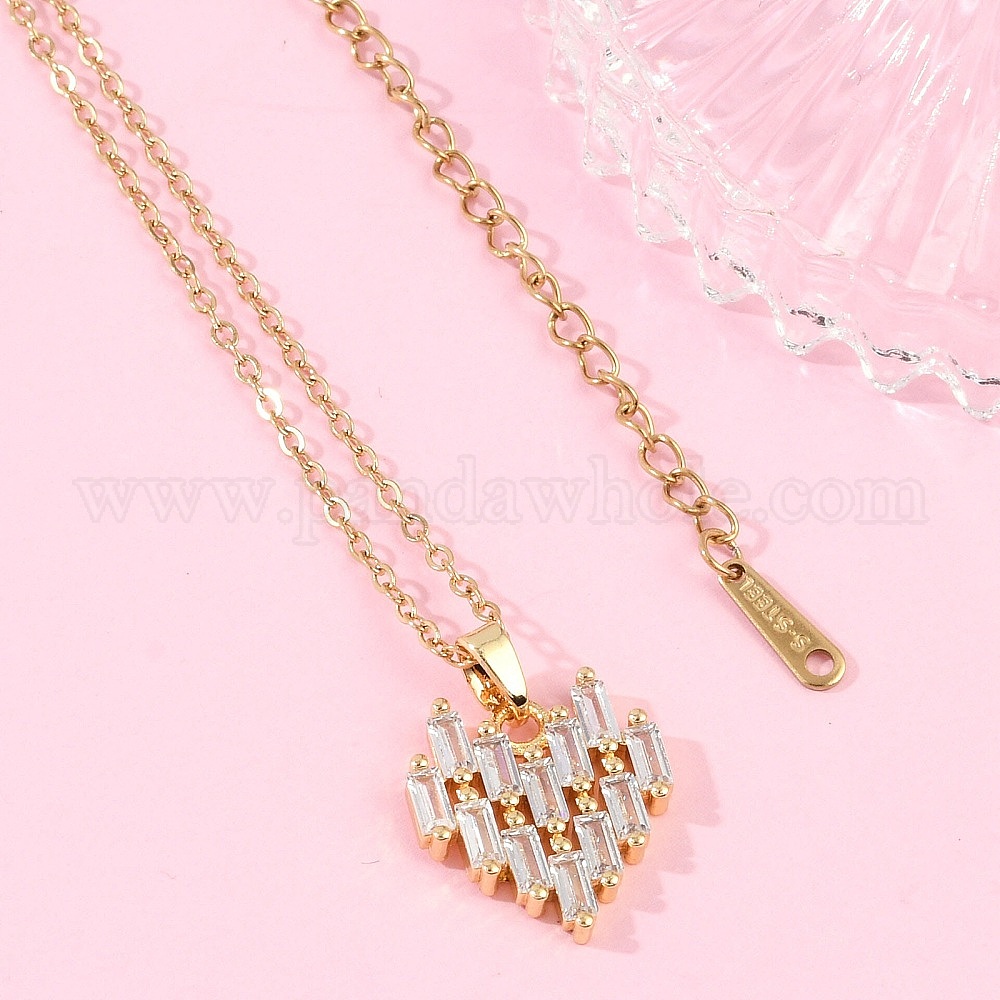 Сердечко латунный микропаве кубический цирконий кулон ожерелья, с ионным покрытием (IP) 304 цепь из нержавеющей стали, стойки покрытие