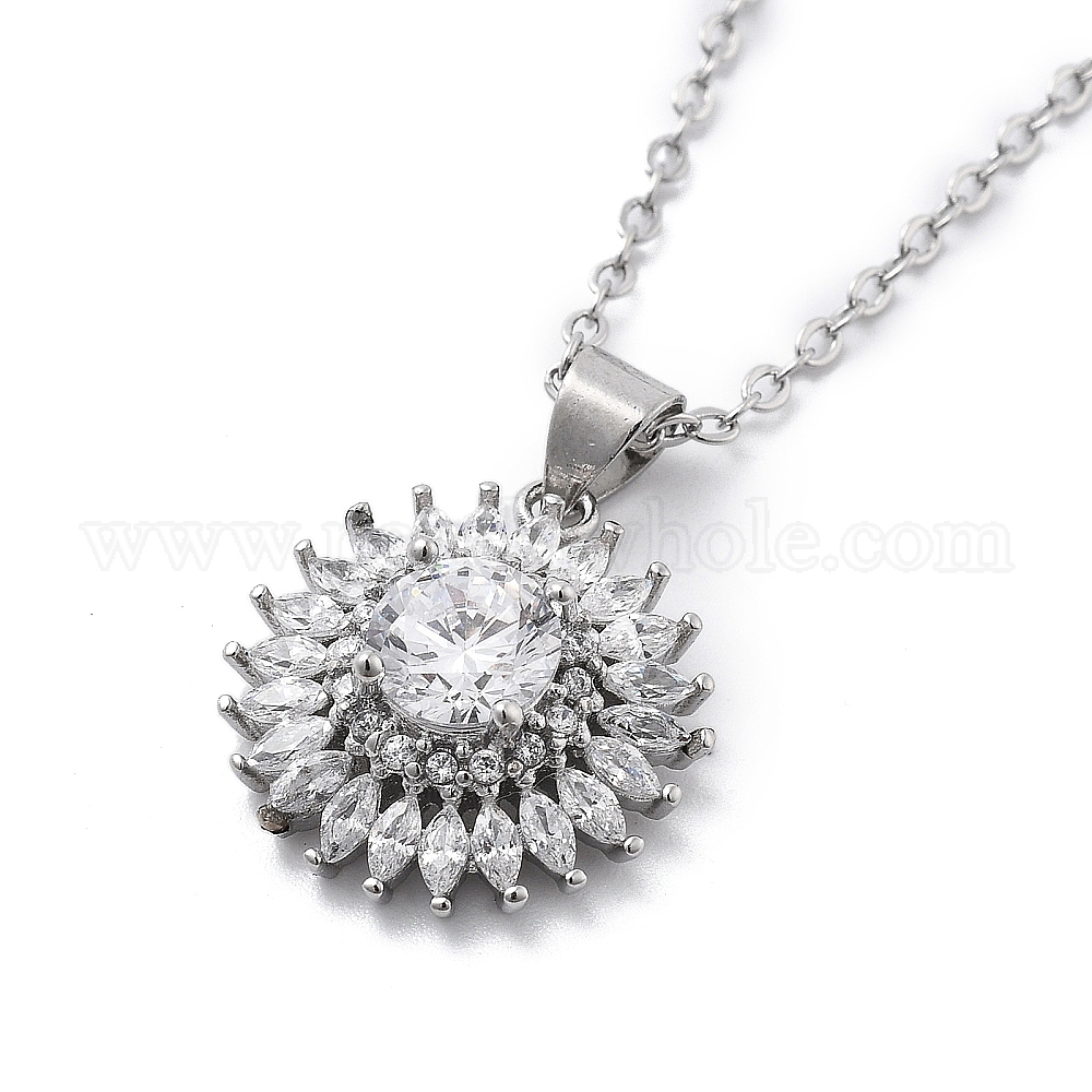 • Платина Латунный прозрачный кубический цирконий цветок подвеска ожерелье, платина, 15.94 дюйм (40.5 см)