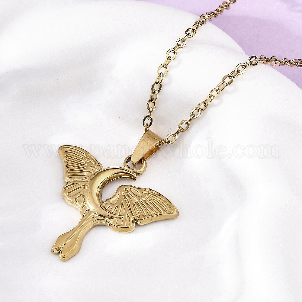 Лунный мотылек 304 ожерелья с подвесками из нержавеющей стали, ионное покрытие (ip)