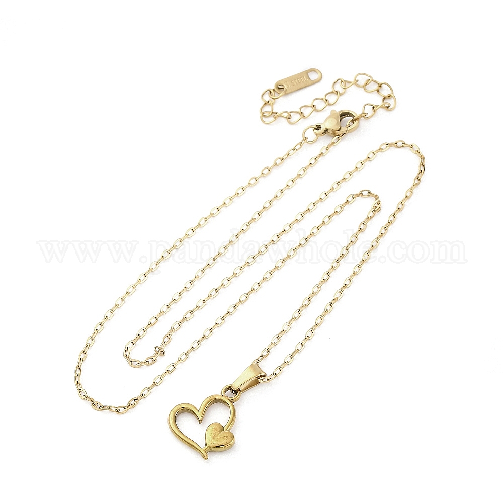 • Настоящее золото 18K Сердце 304 из нержавеющей стали кулон ожерелья, ионное покрытие (ip), реальный 18 k позолоченный, 18.11 дюйм (46 см)
