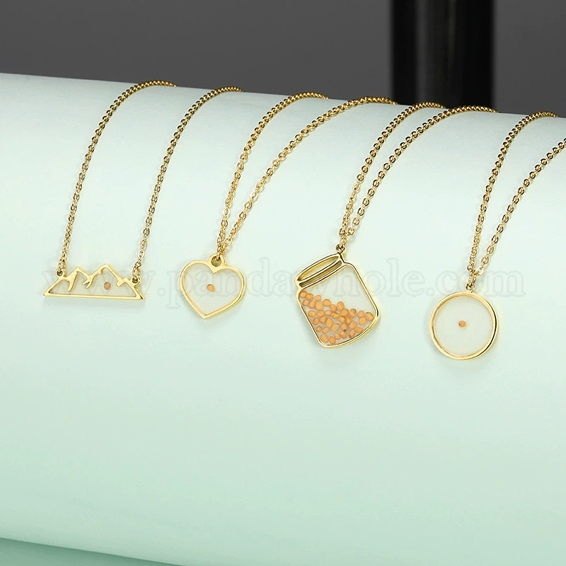 304 ожерелья из нержавеющей стали с подвеской в виде горчичного зерна, cmолой, реальный 18 k позолоченный