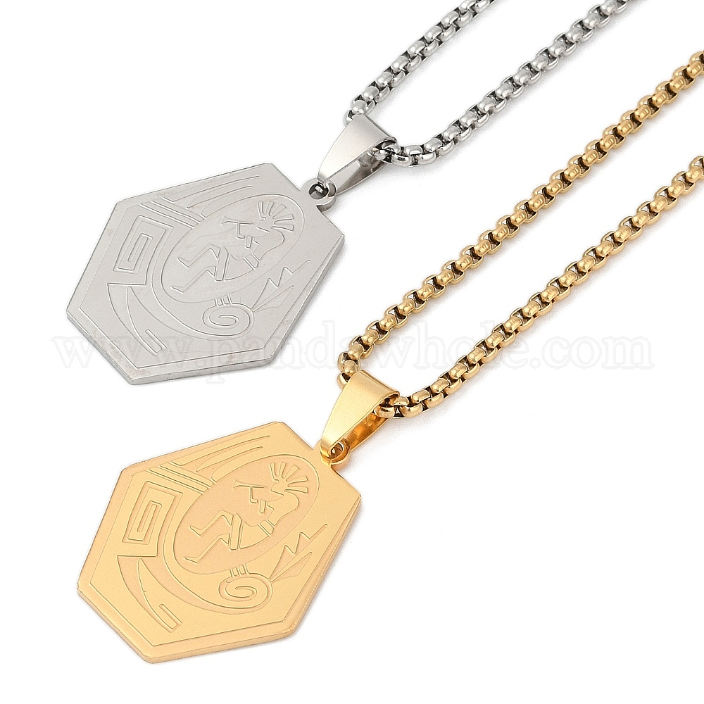 • Золотой 201 Шестиугольные подвески из нержавеющей стали в стиле американских индейцев, золотые, 23.43 дюйм (59.5 см)