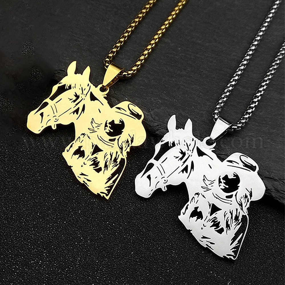 • Нержавеющая Сталь Цвет Лошадь и ковбой 201 полые подвески из нержавеющей стали для мужчин и женщин, Ожерелья с цепочкой, цвет нержавеющей стали, 23.46 дюйм (59.6 см)