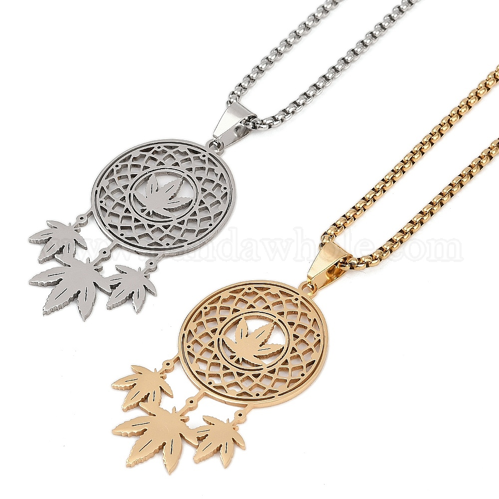 201 ожерелья из плетеной сетки из нержавеющей стали с подвесками в виде листьев