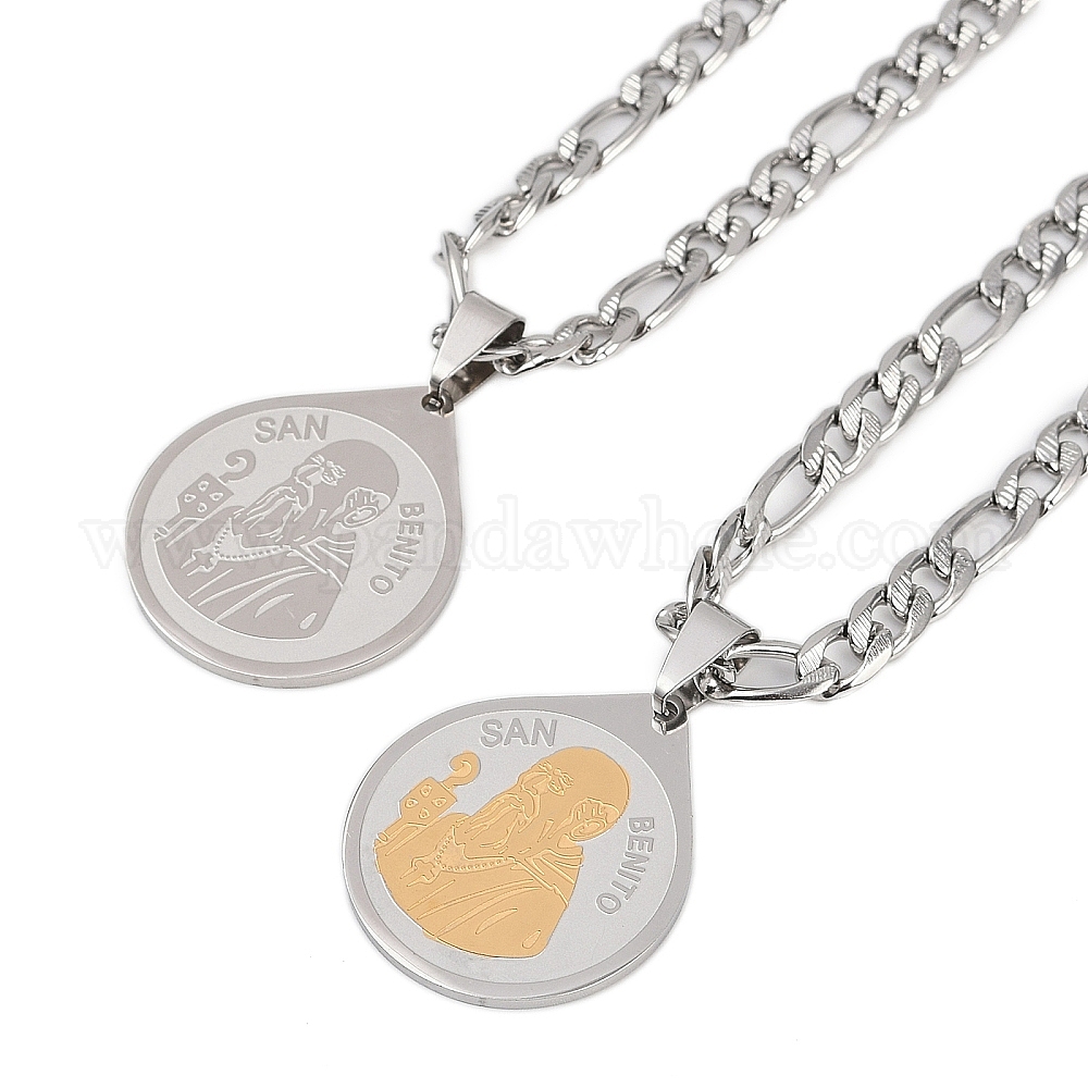 Капля с рисунком отца святого Бенедикта 201 ожерелья из нержавеющей стали с подвеской для мужчин и женщин, ожерелья из цепочек Фигаро