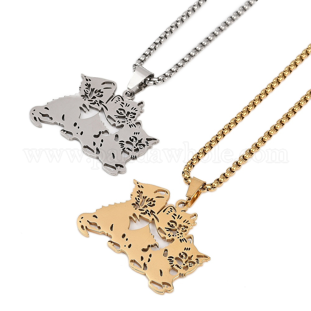 • Золотой 201 полые милые ожерелья с кулоном в виде кошки из нержавеющей стали для женщин, золотые, 23.66 дюйм (60.1 см)