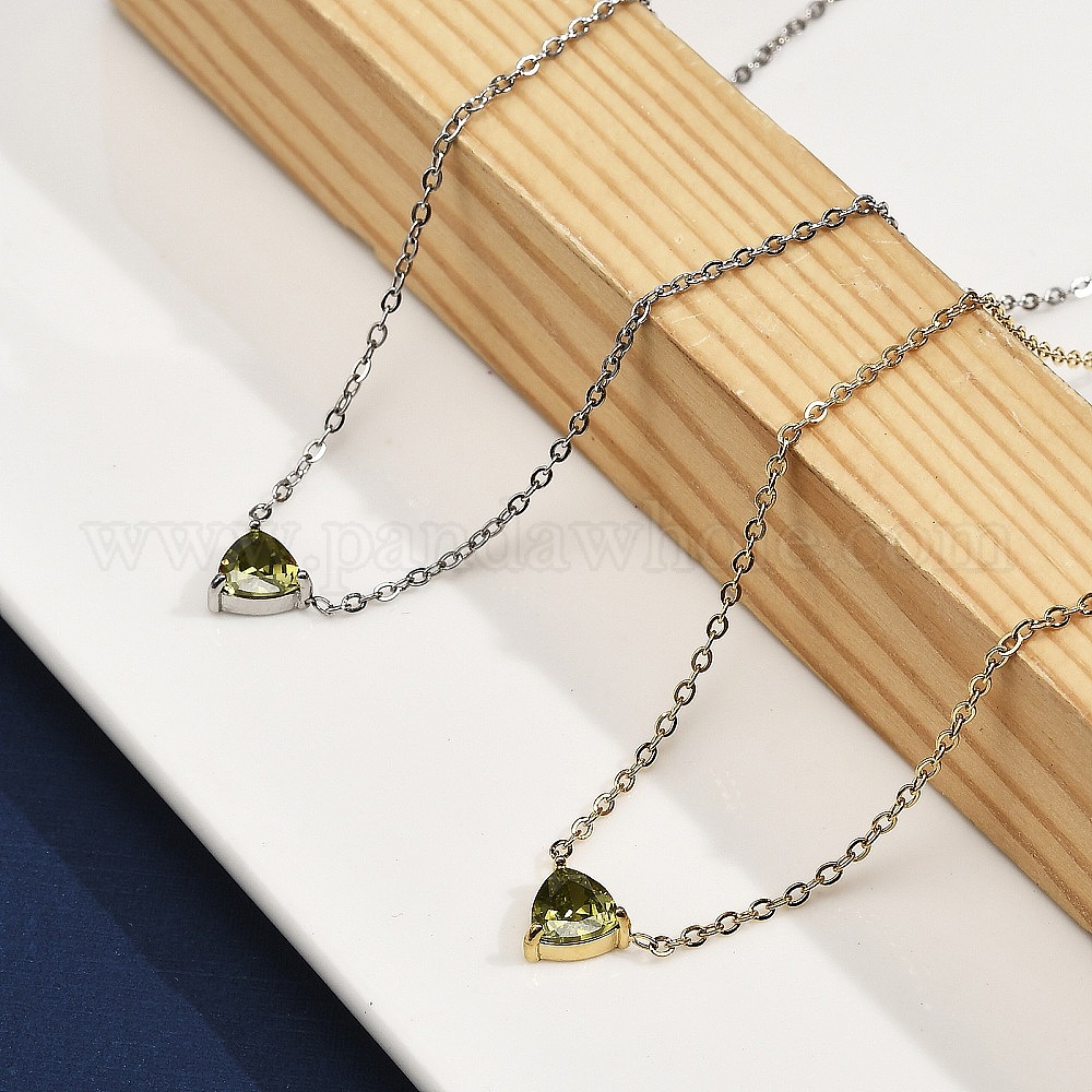 304 ожерелья из нержавеющей стали с треугольными подвесками из кубического циркония оливкового цвета для женщин, ионное покрытие (ip)