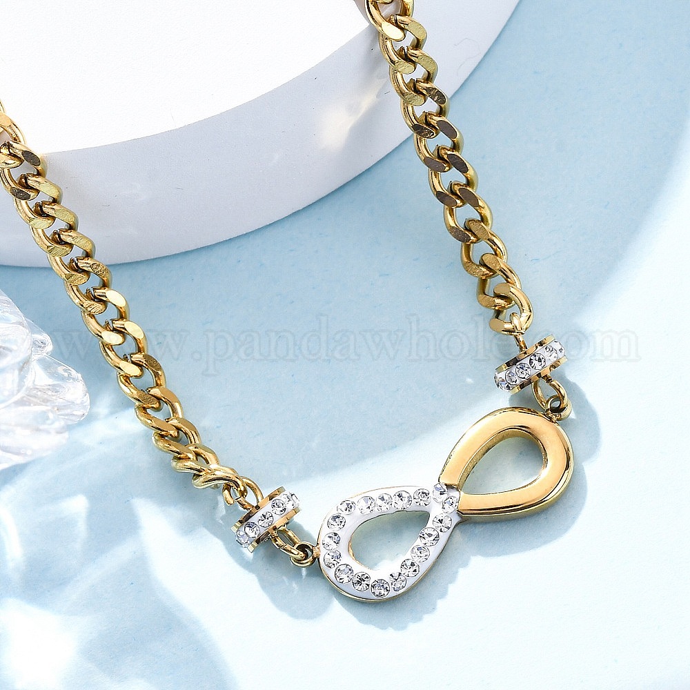 304 ожерелья из нержавеющей стали со стразами из полимерной глины с подвеской в виде бесконечности для женщин, ионное покрытие (ip), кристалл