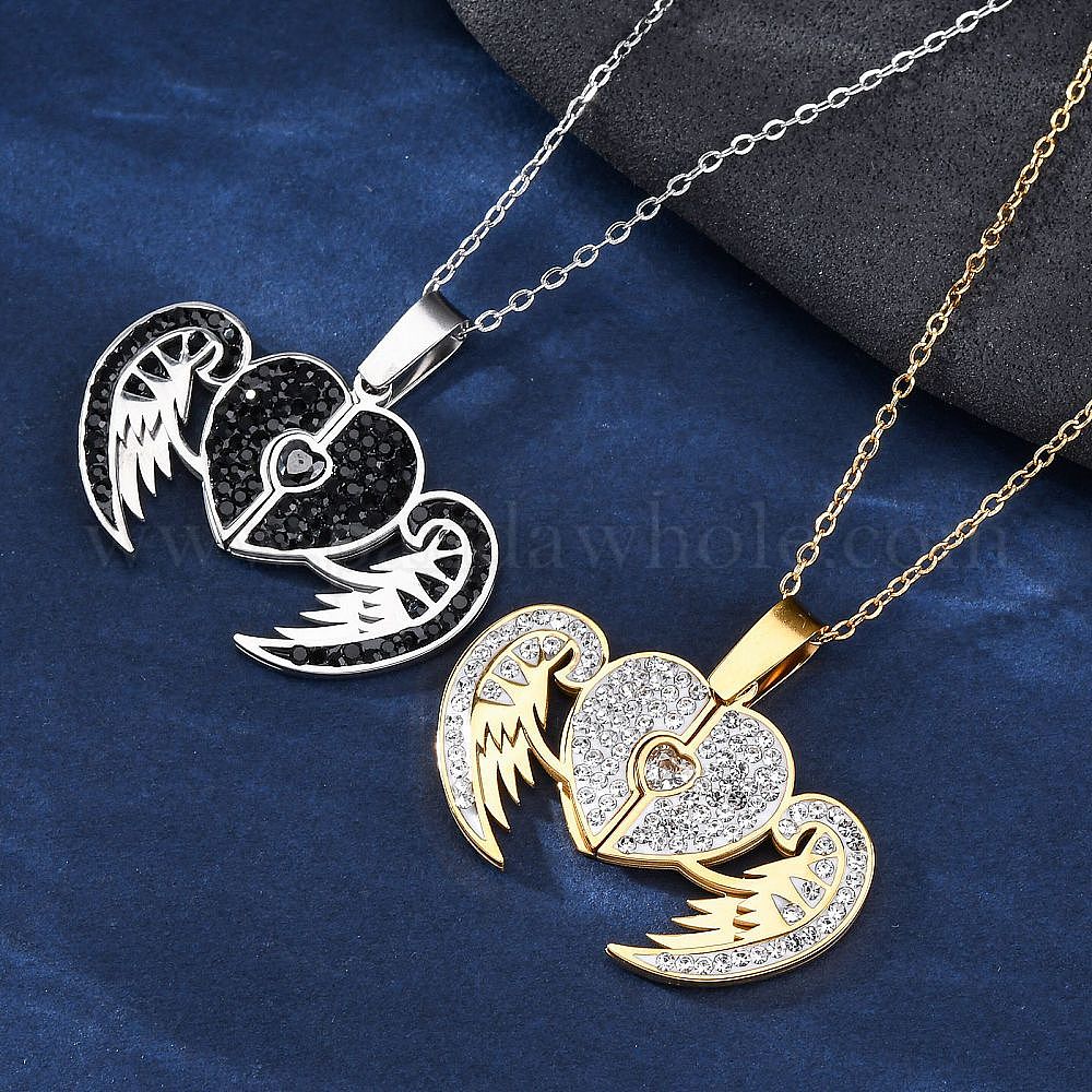 304 ожерелья из нержавеющей стали со стразами из полимерной глины, открывающиеся для женщин, сердце с крыла, ионное покрытие (ip)