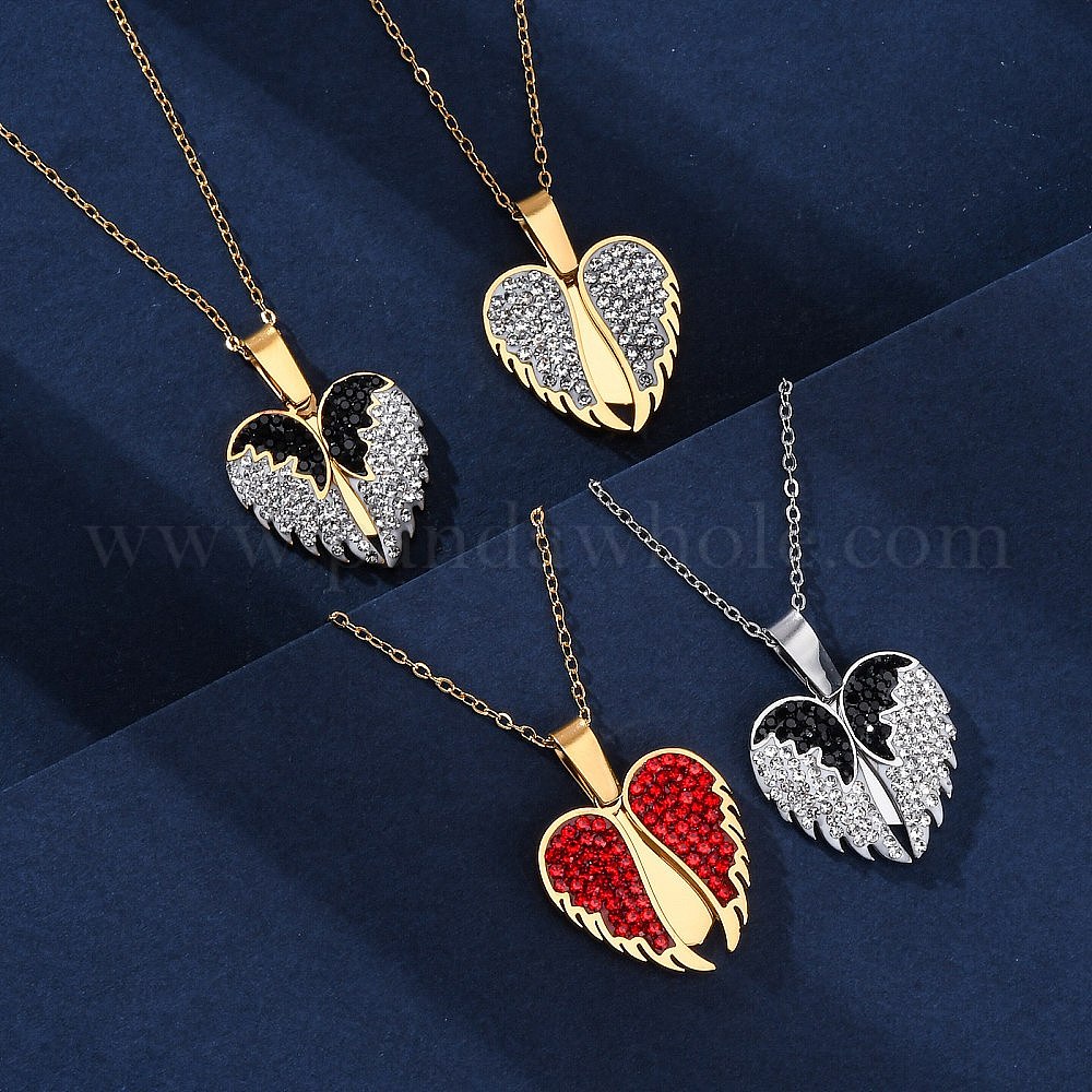 304 ожерелья из нержавеющей стали со стразами из полимерной глины с открывающейся подвеской в виде крыла для женщин, ионное покрытие (ip)