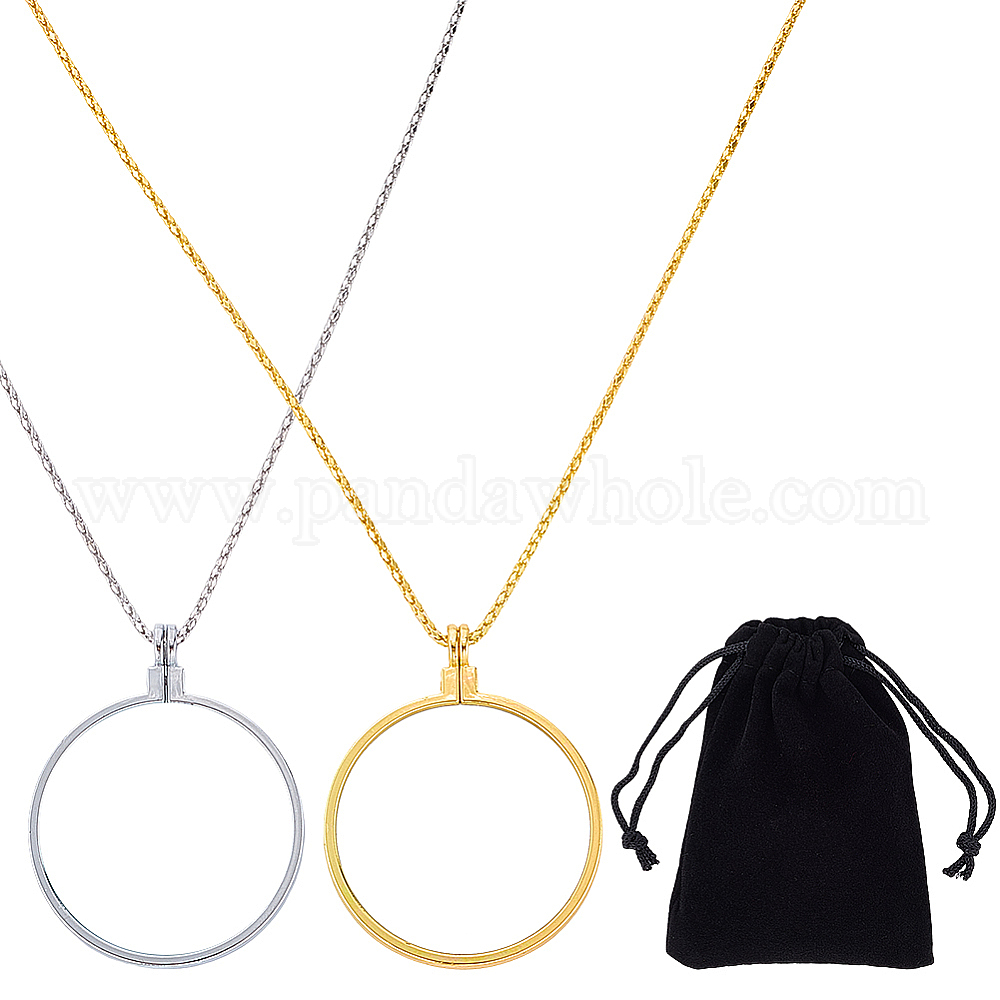 2 шт. 2 цвета плоские круглые стеклянные увеличительные подвески-подвески, ожерелья из цинкового сплава с цепочками