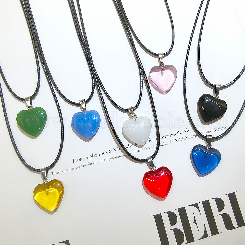Стеклянный кулон в форме сердца, ожерелья из вощеного шнура для женщин и мужчин