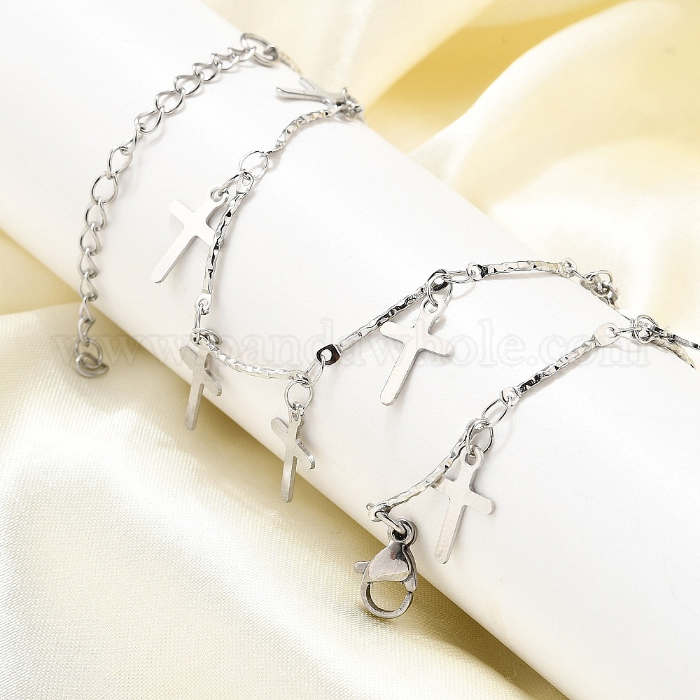304 ожерелья из текстурированной нержавеющей стали с подвесками-кисточками и крестиками, не тускнеет