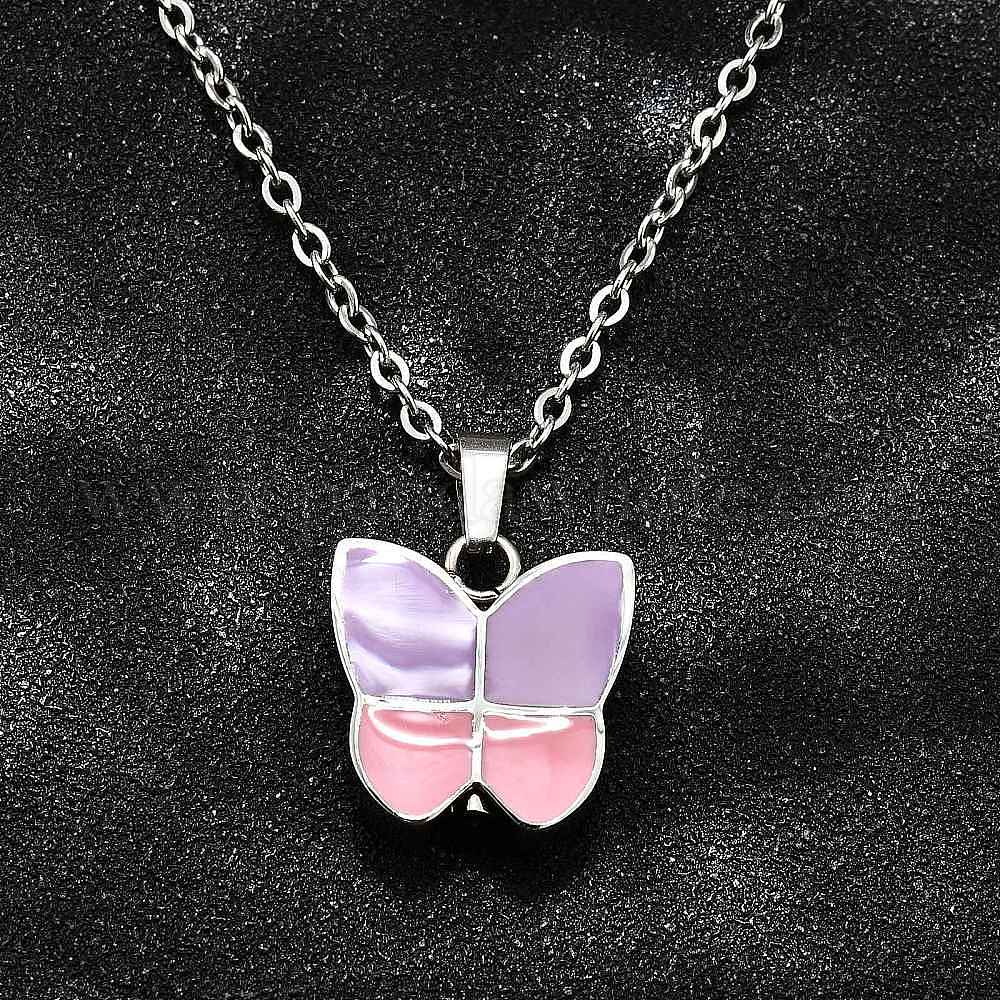 304 ожерелья из нержавеющей стали с подвеской в виде бабочки в виде погребальной шкатулки сиреневого и розового цвета, ожерелья из урны с прахом для домашних животных