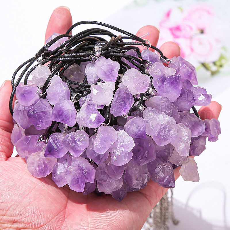 Натуральный аметист необработанные грубые самородки подвески ожерелья, с кожаным шнуром